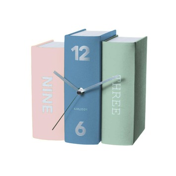 Karlsson tafelklok Book earth tones 20x15x20 cm is een trendy tafelklok. De tafelklok is een echte decoratieve toevoeging door het opvallende uiterlijk. De klok kan op een tafel of kast gezet worden, maar staat ook leuk in een boekenkast. De tafelklok heeft een combinatie van de kleuren roze, blauw en groen. Exclusief 1 AA batterij. Karlsson tafelklok Book earth tones 20x15x20 cm is 20 centimeter hoog, 20 centimeter breed en 15 centimeter diep.