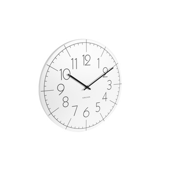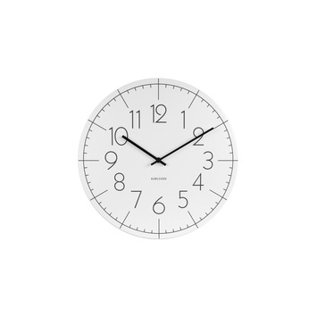 Karlsson wandklok Blade metaal wit 40cm is een mooi vormgegeven klok vervaardigd uit een stalen plaat zonder kast of glasplaat. De zwarte cijfers zijn gemakkelijk te lezen op de grijze wijzerplaat. De klok heeft een retro uitstraling. De klok is ook verkrijgbaar in de kleur grijs. Exclusief 1 AA batterij. De wandklok heeft een diameter van 40 centimeter en is 4 centimeter diep.