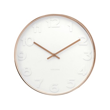 De Karlsson wandklok Mr Metaal bruin/wit 51x7cm is een klok die niet zal misstaan in verschillende interieurs. De metalen rand om de klok maakt het mooie ontwerp helemaal af. Dit model wandklok is uitgevoerd met cijfers die zijn uitgestanst in de wijzerplaat. Hierdoor krijg je een erg mooi effect wat de klok tot een eyecatcher maakt in ieder interieur. Deze klok is ook verkrijgbaar in de kleur gepolijst wit. Exclusief 1 AA batterij. Karlsson wandklok Mr. Metaal koper/wit 51x7cm heeft een diameter van 51 centimeter en een diepte van 7 centimeter.