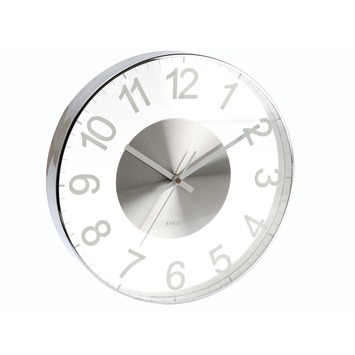 De Karlsson wandklok Slim Cased zilver 29x5 cm is een strakke glas klok met metalen rand die mooi oogt elke muur. Doordat de muur door de klok heen schijnt geeft het een stylish effect. Deze klok is tevens voorzien van een sweep movement uurwerk waardoor er geen getetikt is van het uurwerk. De grote cijfers zijn gemakkelijk te lezen op de strakke wijzerplaat. Deze klok past in elke kamer van het huis. Exclusief 1 AA batterij. Karlsson wandklok Slim Cased zilver 29x5 cm heeft een diameter van 29 centimeter en is 5 entimeter diep.