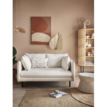De KARWEI 2-zits bank Gayle zand polyester straalt rust en comfort uit. De landelijke en romantische vormen in combinatie met de losse kussens in de armleuningen zorgen voor een zachte zitervaring. Dankzij de diepe zit kun je heerlijk ontspannen en languit liggen. De hoge poten geven de bank een luchtige uitstraling, waardoor je ondanks de royale afmetingen toch een ruimtelijk gevoel in de woonkamer behoudt.