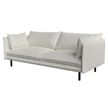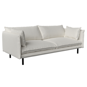 Voor het zitcomfort is de bank voorzien van Nosag vering met daarboven 6 cm flexibel schuim en 12 cm HR koudschuim. Dit materiaal staat bekend om zijn veerkracht en goede ondersteuning. De rugkussens zijn gevuld met flexibel schuim met een dichtheid van 23 kg/m³ en hebben een kern van 50% siliconen en 50% schuimvlokken. Dit zorgt voor een combinatie van stevigheid en zachtheid. De bekleding is gemaakt van geweven polyester, een sterke kunstvezel die slijtvast, lichtbestendig en onderhoudsvriendelijk is. Dankzij de hoogwaardige materialen en de productie in Europa is de bank geschikt voor intensief en langdurig gebruik.