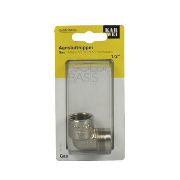 De KARWEI aansluitnippel haaks nikkel m24 x 1/2 inch wordt gebruikt om een gasslang aan te sluiten op een gasfornuis. De aansluitnippel is nodig om de Nederlands m24 gasslangen te kunnen koppelen aan het gasfornuis.