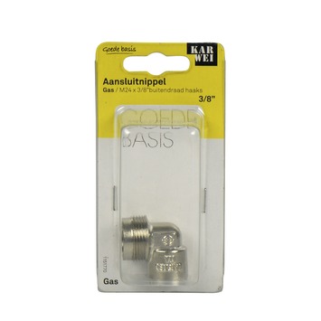 De KARWEI aansluitnippel haaks nikkel m24 x 3/8 inch wordt gebruikt om een gasslang aan te sluiten op een gasfornuis. De aansluitnippel is nodig om de Nederlands m24 gasslangen te kunnen koppelen aan het gasfornuis.