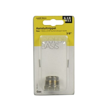 De KARWEI aansluitnippel recht nikkel m24 x 3/8 inch wordt gebruikt om een gasslang aan te sluiten op een gasfornuis. De aansluitnippel is nodig om de Nederlands m24 gasslangen te kunnen koppelen aan het gasfornuis.