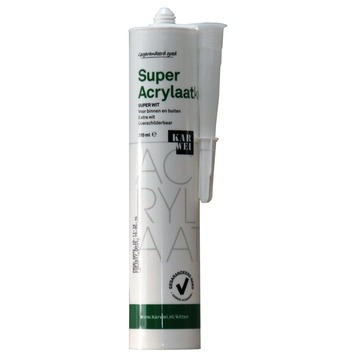 De KARWEI Acrylaatkit 310ml super wit is een kant en klare acrylaatkit op basis van water en geschikt voor het afdichten van voegen, naden, kieren en scheuren. Daarnaast is de acrylaatkit overschilderbaar en uv-bestendig. Deze KARWEI Acrylaatkit 310ml wit in de kleur super wit is zowel binnen als buiten toepasbaar.