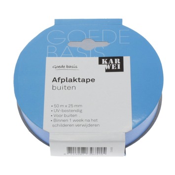 De KARWEI afplaktape buiten 50mx25mm is een afplaktape van het KARWEI eigen merk. Afplaktape voorkomt dat er (grond)verf komt op plaatsen waar je het niet wilt hebben. De afplaktape is geschikt voor buiten en is UV bestendig. De tape dient binnen een week na het schilderen verwijderd te worden.