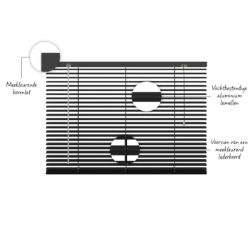 - Aluminium lamellen zijn vochtbestendig en daarom uitermate geschikt voor vochtige ruimtes zoals badkamers