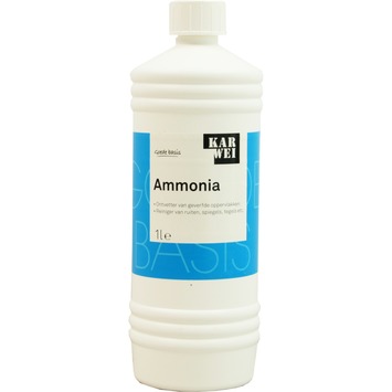 Karwei ammonia voor het reinigen en ontvetten van ruiten, spiegels, tegels en geverfde oppervlakken. Karwei adviseert voor het reinigen van nog te schilderen oppervlakken een verfreiniger te gebruiken.