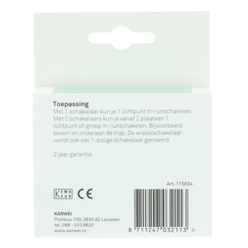 Met een KARWEI Aurora Wisselschakelaar Crème kun je op twee plekken een lichtpunt in-/uitschakelen, bijvoorbeeld onderaan de trap voor het licht op de overloop. Met een tweede wisselschakelaar op de overloop kun je het licht weer aan-/uitschakelen.