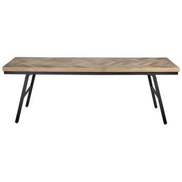 De bank Mateo is gemaakt van gerecycled teak hout en uitgevoerd in een visgraat motief. Het zwart metalen frame geeft de bank een stoere look. Leuk in combinatie met de Mateo eetkamertafel. De afmetingen zijn (hxbxd): 46x160x40 cm.