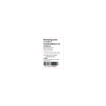 De KARWEI Basisplug nylon Ø 10mm met houtdraadbout RVS, de meest gebruikte plug voor toepassing in massieve bouwmaterialen, zoals beton en massieve steen. U koopt de basisplug per 4 stuks, inclusief houtdraadbout rvs van 8x60mm . De basisplug is 50mm lang en heeft diepe vertanding .Zo bevestigt u met deze plug en houtschroef middelzware materialen aan muren en wanden, bijvoorbeeld schilderijen, plinten en legplanken. De houtdraadbout rvs middelzware materialen aan muren en wanden, bijvoorbeeld schilderijen, plinten en legplanken. De houtdraadbout rvs roest niet waardoor u deze ook buiten of in natte ruimtes, zoals de badkamer, kunt toepassen. De houtdraadbout rvs is 8mm dik en 60mm lang. Voorboren met een boormaat van 10mm benodigd. Dan zorgt u voor de meest stevige bevestiging. De verpakking bevat in totaal 4 basispluggen van 10mm dikte met bijbehorende houtdraadbout rvs