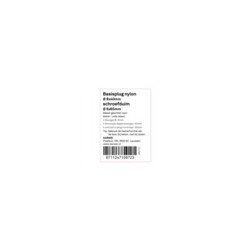 De KARWEI Basisplug nylon Ø 8mm met schroefduim, de meest gebruikte plug voor toepassing in massieve bouwmaterialen, zoals beton en massieve steen. U koopt de basisplug per 3 stuks, inclusief muurduim van 6x65mm . De basisplug is 40mm lang en heeft diepe vertanding .Zo bevestigt u met deze plug en houtschroef middelzware materialen aan muren en wanden, bijvoorbeeld schilderijen, plinten en legplanken. De muurduim middelzware materialen aan muren en wanden, bijvoorbeeld schilderijen, plinten en legplanken. De muurduim roest niet waardoor u deze ook buiten of in natte ruimtes, zoals de badkamer, kunt toepassen. De muurduim is 6mm dik en 65mm lang. Voorboren met een boormaat van 8mm benodigd. Dan zorgt u voor de meest stevige bevestiging. De verpakking bevat in totaal 3 basispluggen van 8mm dikte met bijbehorende muurduim