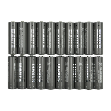 KARWEI Batterij Alkaline AA 20 stuks ook bekend als LR6, MN1500, AM3, UM3, HP7, D14, mignon of penlite. Zijn geschikt voor verschillende toepassingen zoals fotocamera's, zaklampen, afstandsbedieningen en speelgoed. In één verpakking zitten 20 AA batterijen.