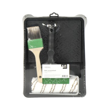 De KARWEI beitsset 18cm 4-delig is een complete beitsset bestaande uit 1 beitsroller van 18 cm, 1 beugel van 18 cm, 1 verfbak en 1 platte beitskwast maat 60. Deze set is bestemd voor het eenvoudig aanbrengen van beits op houten ondergronden. De beitskwast is ideaal voor het beitsen van oneffen of moeilijk bereikbare plaatsen en de beitsroller is ideaal voor het gericht aanbrengen van beits op vlakke ondergronden. Zowel de beitsroller als de beitskwast zijn vervaardigd uit speciale materialen die garant staan voor een goede opname en afgifte van de beits waardoor je lang aaneengesloten kunt werken. Deze set is bedoeld voor de grotere beitsklus.