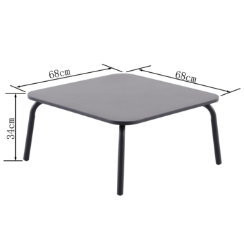 De KARWEI bijzettafel Kopenhagen in antraciet is de perfecte aanvulling voor een moderne tuin of terras. Met zijn vierkante ontwerp en afmetingen van 68 x 68 cm en een hoogte van 34 cm biedt deze tafel voldoende ruimte voor drankjes, planten of decoraties. De antracietkleurige afwerking geeft de tafel een elegante en stoere uitstraling die makkelijk te combineren is met andere tuinmeubelen en stijlen.