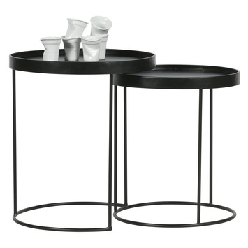 De bijzettafels Lana hebben een retro uitstraling. De set bestaat uit 2 bijzettafels. De bijzettafels hebben een afneembaar blad en zijn geheel gemaakt van metaal in de kleur zwart. De bijzettafels zijn een mooie toevoeging aan elk interieur. De set Lana is ook verkrijgbaar in de kleur antique brass.