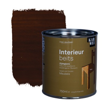 De KARWEI binnenbeits interieur eiken transparant 750 ml is ideaal voor het langdurig beschermen van houten meubels binnenshuis. Deze zijdeglanzende beits is transparant, waardoor de houtnerf zichtbaar blijft. De beits op waterbasis droogt snel en is reukarm. Je kunt de beits al na 4 uur overschilderen en is eenvoudig met een kwast of roller aan te brengen. Het blik bevat 750 milliliter eiken beits, dit is goed voor een oppervlakte van zo'n 9 vierkante meter. De KARWEI binnenbeits is verkrijgbaar in diverse kleuren. Zit jou kleur er toch niet bij, dan kun je deze laten mengen in de KARWEI bouwmarkt op de verfmengmachine.