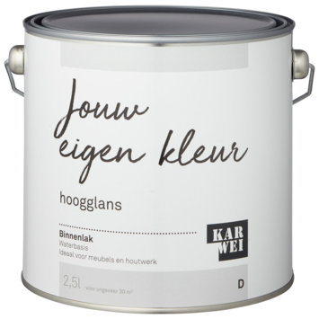 Deze KARWEI binnenlak is een verf op waterbasis. Verf op waterbasis is de beste keus voor binnenshuis. Het is geurarm en blijft langer mooi van kleur. Deze kras- en stootvaste verf is geschikt voor hout, en in combinatie met de daarvoor geschikte grondverf, ook op metaal en kunststoffen. Voor een optimaal resultaat van de KARWEI binnenlak behandel je de ondergrond eerst met de KARWEI grondverf voor binnen. Een uur na het aanbrengen van de verf is deze reeds stofdroog, na 20 uur kan je de volgende laag aanbrengen. De lak is te gebruiken als afwerking van nieuw onbehandelde delen, maar ook op bestaand schilderwerk of om meubels een nieuwe uitstraling te geven. De binnenlak is eenvoudig aan te brengen met een kwast of lakroller voor verf op waterbasis.