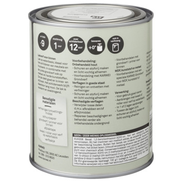 Karwei extra dekkende binnenlak hoogglans zorgt voor een professionele afwerking van jouw interieur. Met een groot kleurbehoud geven ze jouw deuren, kozijnen en meubels langdurig een warme uitstraling. De lakken op waterbasis zijn sneldrogend en reuk- en oplosmiddelarm en daarmee optimaal voor binnengebruik. De stoot- en krasvaste eigenschappen zorgen voor een duurzame afwerking van de gelakte ondergrond.