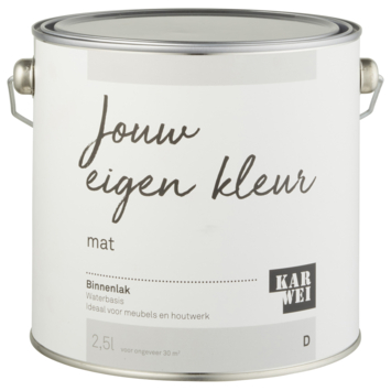 Deze KARWEI binnenlak is een verf op waterbasis. Verf op waterbasis is de beste keus voor binnenshuis. Het is geurarm en blijft langer mooi van kleur. Deze kras- en stootvaste verf is geschikt voor hout, en in combinatie met de daarvoor geschikte grondverf, ook op metaal en kunststoffen. Voor een optimaal resultaat van de KARWEI binnenlak behandel je de ondergrond eerst met de KARWEI grondverf voor binnen. Een uur na het aanbrengen van de verf is deze reeds stofdroog, na 20 uur kan je de volgende laag aanbrengen. De lak is te gebruiken als afwerking van nieuw onbehandelde delen, maar ook op bestaand schilderwerk of om meubels een nieuwe uitstraling te geven. De binnenlak is eenvoudig aan te brengen met een kwast of lakroller voor verf op waterbasis.