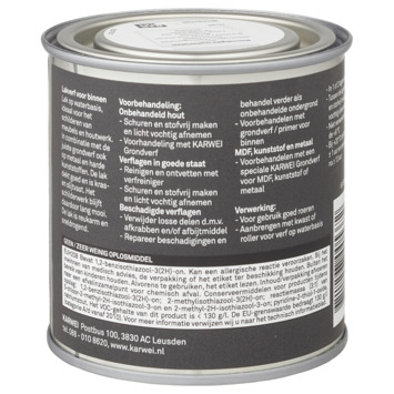 Karwei extra dekkende binnenlak mat zorgt voor een professionele afwerking van jouw interieur. Met een groot kleurbehoud geven ze jouw deuren, kozijnen en meubels langdurig een warme uitstraling. De lakken op waterbasis zijn sneldrogend en reuk- en oplosmiddelarm en daarmee optimaal voor binnengebruik. De stoot- en krasvaste eigenschappen zorgen voor een duurzame afwerking van de gelakte ondergrond.
