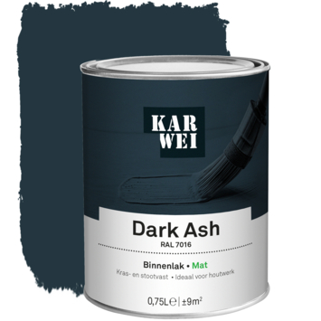 De KARWEI binnenlak mat RAL 7016 dark ash 750 ml is een watergedragen verf die ideaal is voor binnenshuis. De lak is kras- en stootvast, waardoor je deuren, kozijnen en meubels goed kunt beschermen tegen slijtage. Omdat de verf op waterbasis is, is hij geurarm en blijft hij langer mooi van kleur. Je kunt de lak op hout gebruiken en met de juiste grondverf ook op metaal en kunststof. De verf is stofdroog na 1 uur en je kunt de volgende laag aanbrengen na 12 uur.