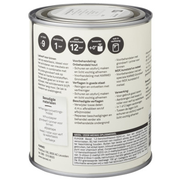 Karwei extra dekkende binnenlak mat zorgt voor een professionele afwerking van jouw interieur. Met een groot kleurbehoud geven ze jouw deuren, kozijnen en meubels langdurig een warme uitstraling. De lakken op waterbasis zijn sneldrogend en reuk- en oplosmiddelarm en daarmee optimaal voor binnengebruik. De stoot- en krasvaste eigenschappen zorgen voor een duurzame afwerking van de gelakte ondergrond.
