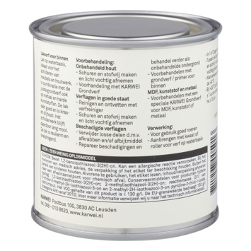 Karwei extra dekkende binnenlak mat zorgt voor een professionele afwerking van jouw interieur. Met een groot kleurbehoud geven ze jouw deuren, kozijnen en meubels langdurig een warme uitstraling. De lakken op waterbasis zijn sneldrogend en reuk- en oplosmiddelarm en daarmee optimaal voor binnengebruik. De stoot- en krasvaste eigenschappen zorgen voor een duurzame afwerking van de gelakte ondergrond. Tip: bij onbehandeld hout gebruik je als eerste laag altijd grondverf. Toch liever een andere kleur? Laat deze dan mengen op de verfmengmachine bij KARWEI. Elke gewenste kleur is mogelijk in mat, zijdeglans en hoogglans. Test het zelf! Zien hoe een binnenlak kleur bij jou thuis staat? Probeer dan onze handige KARWEI kleurtesters.