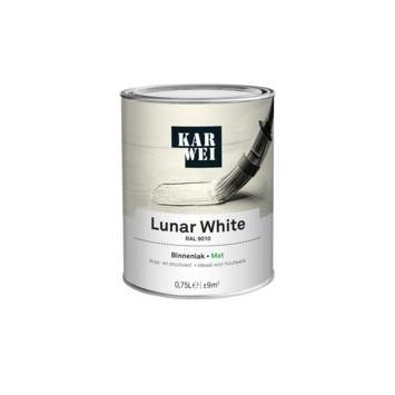 De KARWEI binnenlak mat RAL 9010 lunar white 750 ml is een watergedragen verf die ideaal is voor binnenshuis. De lak is kras- en stootvast, waardoor je deuren, kozijnen en meubels goed kunt beschermen tegen slijtage. Omdat de verf op waterbasis is, is hij geurarm en blijft hij langer mooi van kleur. Je kunt de lak op hout gebruiken en met de juiste grondverf ook op metaal en kunststof. De verf is stofdroog na 1 uur en je kunt de volgende laag aanbrengen na 12 uur.