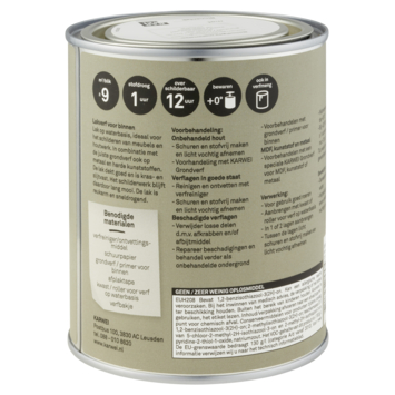Karwei extra dekkende binnenlak mat zorgt voor een professionele afwerking van jouw interieur. Met een groot kleurbehoud geven ze jouw deuren, kozijnen en meubels langdurig een warme uitstraling. De lakken op waterbasis zijn sneldrogend en reuk- en oplosmiddelarm en daarmee optimaal voor binnengebruik. De stoot- en krasvaste eigenschappen zorgen voor een duurzame afwerking van de gelakte ondergrond.