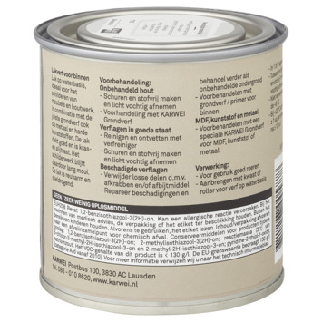 Karwei extra dekkende binnenlak mat zorgt voor een professionele afwerking van jouw interieur. Met een groot kleurbehoud geven ze jouw deuren, kozijnen en meubels langdurig een warme uitstraling. De lakken op waterbasis zijn sneldrogend en reuk- en oplosmiddelarm en daarmee optimaal voor binnengebruik. De stoot- en krasvaste eigenschappen zorgen voor een duurzame afwerking van de gelakte ondergrond.