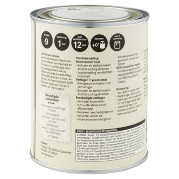 Karwei extra dekkende binnenlak mat zorgt voor een professionele afwerking van jouw interieur. Met een groot kleurbehoud geven ze jouw deuren, kozijnen en meubels langdurig een warme uitstraling. De lakken op waterbasis zijn sneldrogend en reuk- en oplosmiddelarm en daarmee optimaal voor binnengebruik. De stoot- en krasvaste eigenschappen zorgen voor een duurzame afwerking van de gelakte ondergrond.