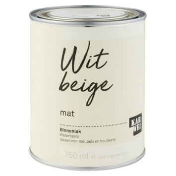 Mooi warm wit. Dekt goed. Heb wel eerst grondverf gebruikt omdat het donkerbruin hout was. Maar bij ander meubel in licht hout was schuren en lakken voldoende. Droogt ook snel dus goed eigen merk van Karwei.