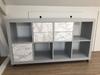 Mooie matte grijze kleur die naar blauw neigt. Schildert fijn en droogt erg snel op. Heeft meestal wel twee laagjes nodig. Ik heb deze verf eerder gebruikt en hij is wel wat stoot- en krasgevoelig. Hij is zo mat dat het bijna een soort kalkverf lijkt.