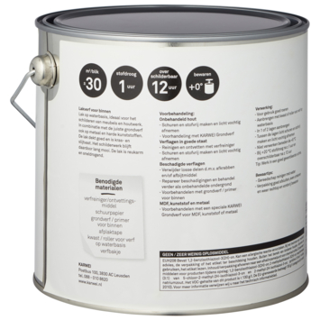 Deze KARWEI binnenlak is een verf op waterbasis. Verf op waterbasis is de beste keus voor binnenshuis. Het is geurarm en blijft langer mooi van kleur. Deze kras- en stootvaste verf is geschikt voor hout, en in combinatie met de daarvoor geschikte grondverf, ook op metaal en kunststoffen. Voor een optimaal resultaat van de KARWEI binnenlak behandel je de ondergrond eerst met de KARWEI grondverf voor binnen. Een uur na het aanbrengen van de verf is deze reeds stofdroog, na 20 uur kan je de volgende laag aanbrengen. De lak is te gebruiken als afwerking van nieuw onbehandelde delen, maar ook op bestaand schilderwerk of om meubels een nieuwe uitstraling te geven. De binnenlak is eenvoudig aan te brengen met een kwast of lakroller voor verf op waterbasis.