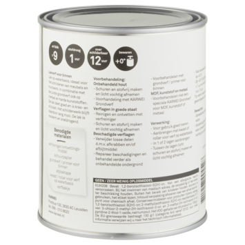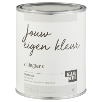 Deze KARWEI binnenlak is een verf op waterbasis. Verf op waterbasis is de beste keus voor binnenshuis. Het is geurarm en blijft langer mooi van kleur. Deze kras- en stootvaste verf is geschikt voor hout, en in combinatie met de daarvoor geschikte grondverf, ook op metaal en kunststoffen. Voor een optimaal resultaat van de KARWEI binnenlak behandel je de ondergrond eerst met de KARWEI grondverf voor binnen. Een uur na het aanbrengen van de verf is deze reeds stofdroog, na 20 uur kan je de volgende laag aanbrengen. De lak is te gebruiken als afwerking van nieuw onbehandelde delen, maar ook op bestaand schilderwerk of om meubels een nieuwe uitstraling te geven. De binnenlak is eenvoudig aan te brengen met een kwast of lakroller voor verf op waterbasis.