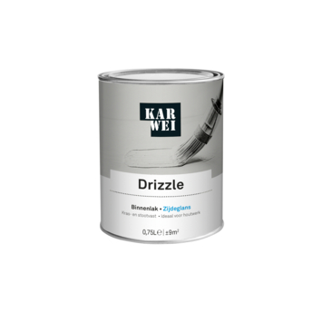 De KARWEI binnenlak zijdeglans drizzle 750 ml is een watergedragen verf die ideaal is voor binnenshuis. De lak is kras- en stootvast, waardoor je deuren, kozijnen en meubels goed kunt beschermen tegen slijtage. Omdat de verf op waterbasis is, is hij geurarm en blijft hij langer mooi van kleur. Je kunt de lak op hout gebruiken en met de juiste grondverf ook op metaal en kunststof. De verf is stofdroog na 1 uur en je kunt de volgende laag aanbrengen na 12 uur.
