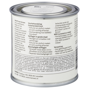 Karwei extra dekkende binnenlak zijdeglans zorgt voor een professionele afwerking van jouw interieur. Met een groot kleurbehoud geven ze jouw deuren, kozijnen en meubels langdurig een warme uitstraling. De lakken op waterbasis zijn sneldrogend en reuk- en oplosmiddelarm en daarmee optimaal voor binnengebruik. De stoot- en krasvaste eigenschappen zorgen voor een duurzame afwerking van de gelakte ondergrond.