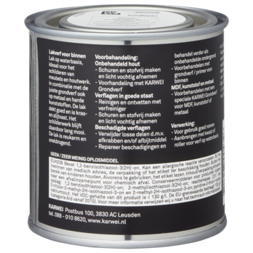 Karwei extra dekkende binnenlak zijdeglans zorgt voor een professionele afwerking van jouw interieur. Met een groot kleurbehoud geven ze jouw deuren, kozijnen en meubels langdurig een warme uitstraling. De lakken op waterbasis zijn sneldrogend en reuk- en oplosmiddelarm en daarmee optimaal voor binnengebruik. De stoot- en krasvaste eigenschappen zorgen voor een duurzame afwerking van de gelakte ondergrond.