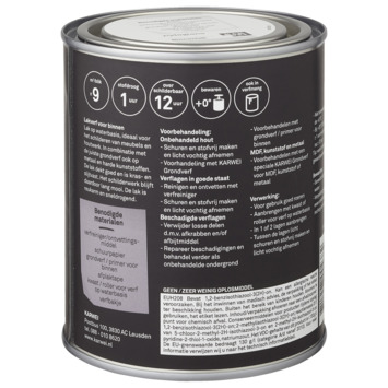 Karwei extra dekkende binnenlak zijdeglans zorgt voor een professionele afwerking van jouw interieur. Met een groot kleurbehoud geven ze jouw deuren, kozijnen en meubels langdurig een warme uitstraling. De lakken op waterbasis zijn sneldrogend en reuk- en oplosmiddelarm en daarmee optimaal voor binnengebruik. De stoot- en krasvaste eigenschappen zorgen voor een duurzame afwerking van de gelakte ondergrond.