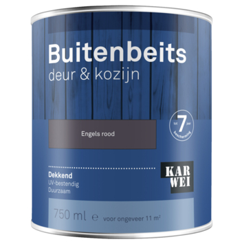 KARWEI buitenbeits deur & kozijn is een duurzame, glanzende, dekkende beits op terpentinebasis. Voor een duurzame bescherming tot 7 jaar van deuren, kozijnen, gevelbetimmering en daklijsten. KARWEI Buitenbeits dekkend dringt goed in het hout, is vochtregulerend en waterafstotend. Lang glansbehoud dankzij het UV filter. Dekkende buitenbeits dekt de houtnerf af, maar blijft wel vochtregulerend. Voorbehandelen met grondverf is niet nodig.