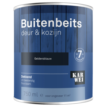 KARWEI buitenbeits deur & kozijn is een duurzame, glanzende, dekkende beits op terpentinebasis. Voor een duurzame bescherming tot 7 jaar van deuren, kozijnen, gevelbetimmering en daklijsten. KARWEI Buitenbeits dekkend dringt goed in het hout, is vochtregulerend en waterafstotend. Lang glansbehoud dankzij het UV filter. Dekkende buitenbeits dekt de houtnerf af, maar blijft wel vochtregulerend. Voorbehandelen met grondverf is niet nodig.