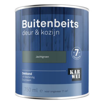 KARWEI buitenbeits deur & kozijn is een duurzame, glanzende, dekkende beits op terpentinebasis. Voor een duurzame bescherming tot 7 jaar van deuren, kozijnen, gevelbetimmering en daklijsten. KARWEI Buitenbeits dekkend dringt goed in het hout, is vochtregulerend en waterafstotend. Lang glansbehoud dankzij het UV filter. Dekkende buitenbeits dekt de houtnerf af, maar blijft wel vochtregulerend. Voorbehandelen met grondverf is niet nodig.