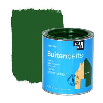 De KARWEI buitenbeits gevelbetimmeringen zaansgroen dekkend 750 ml is ideaal voor het langdurig bescherming van hoogwaardig hout zoals daklijsten en gevelbetimmeringen. De lak is weersbestendig, waterafstotend, UV-bestendig en vochtregulerend. Door al deze eigenschappen kan een duurzaamheid van 4 jaar worden gegarandeerd. De beits is een oplosmiddel houdend product en kan eenvoudig worden aangebracht met een kwast of roller. Daarnaast heeft de beits een optimale dekking en vloeiing, waardoor het aanbrengen een fluitje van een cent is. Het blik bevat 750 milliliter zaansgroene beits, dit is genoeg voor een oppervlakte van zo'n 11 vierkante meter. Op onbehandeld hout is het aan te bevelen om 3 lagen aan te brengen, op hout in goede staat volstaan 2 lagen. Grondverf is niet nodig. De buitenbeits gevelbetimmeringen is verkrijgbaar in vele populaire kleuren.