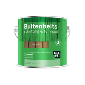 KARWEI buitenbeits schutting & tuinhout is een transparante beits op terpentinebasis. Voor een bescherming tot 3 jaar van schuttingen, speeltoestellen en tuinhout. KARWEI buitenbeits transparant dringt goed in het hout, beschermt tegen weersinvloeden zoals regen en zon, is vochtregulerend en maakt het hout waterafstotend. Ook zeer geschikt voor geïmpregneerd hout. Na het behandelen blijft de natuurlijke structuur en nerf van het hout goed zichtbaar.