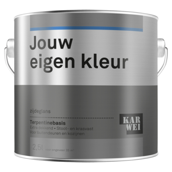 Deze KARWEI buitenlak biedt een prima bescherming voor je huis. Deze hoogglans verf, op basis van terpentine, maakt je kozijnen, deuren, gevelbetimmering en dakranden bestand tegen wisselende weersomstandigheden, zoals Uv-licht, regen en vorst. De lak is te gebruiken als mooie afwerking van nieuw onbehandelde delen, maar ook op bestaand schilderwerk of om meubels een nieuwe look te geven. De verf is in combinatie met de juiste grondverf ook geschikt voor metaal en harde kunststoffen. De lak heeft een hoge dekkracht, blijft lang glanzen en vloeit uitstekend. Voor een optimaal resultaat van de KARWEI buitenlak behandel je de ondergrond eerst met de KARWEI buitenlak grondverf, je schilderwerk is dan tot wel 5 jaar beschermd. De lak is eenvoudig aan te brengen met een kwast of lakroller voor verf op terpentinebasis.