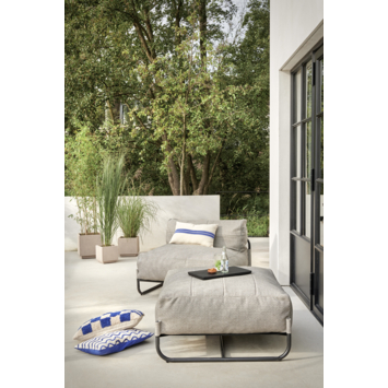 De hocker is te combineren met de buitensofa Jules (art. 244285), maar kan ook gebruikt worden om extra zitplek te creëren, ideaal voor wanneer je gasten hebt of gewoon wat meer ruimte wilt om te relaxen. Deze hocker is geschikt voor 1 persoon en biedt voldoende ruimte om heerlijk te relaxen. De kussens zijn zowel stijlvol als comfortabel, ideaal voor een lange zomerdag.