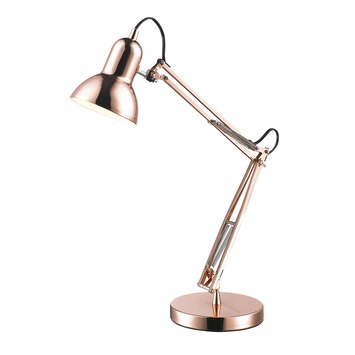 De bureaulamp Lara is een trendy, koperen bureaulamp. De lamp heeft een moderne vorm en een mooie koperen kleur. De bureaulamp is gemaakt van metaal. Zet deze lamp op je bureau en je werkplek is meteen een echte eyecatcher. De bureaulamp heeft een E27 fitting en is geschikt voor een lamp met een maximaal wattage van 40 watt. De lamp is 55 centimeter hoog.
