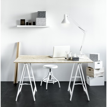 De bureaulamp Marck zwart is een eigentijdse, subtiele bureaulamp. De lamp heeft een moderne vorm en een mooie matzwarte kleur. De bureaulamp is gemaakt van metaal. Zet deze lamp op je bureau en je werkplek is meteen een echte eyecatcher. De bureaulamp heeft een E27 fitting en is geschikt voor een lamp met een maximaal wattage van 40 watt. De lamp is maximaal 95 centimeter hoog. De bureaulamp Marck is er ook in het wit en jade groen.